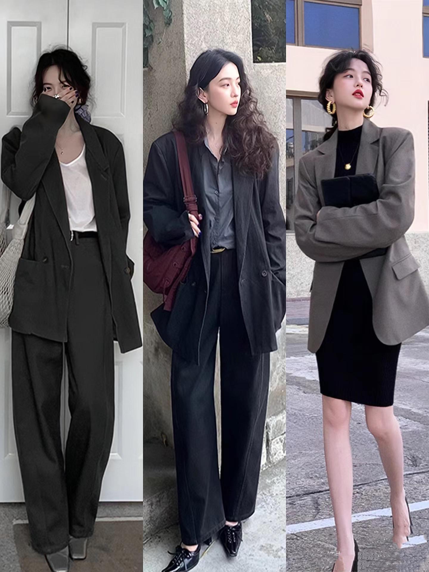 比如方式浪漫元素,就可以讓復古時髦風更洋氣。穿酷颯的西服套裝,配醒目的金色耳環,微卷頭髮,紅脣美妝,簡簡單單就高級洋氣。