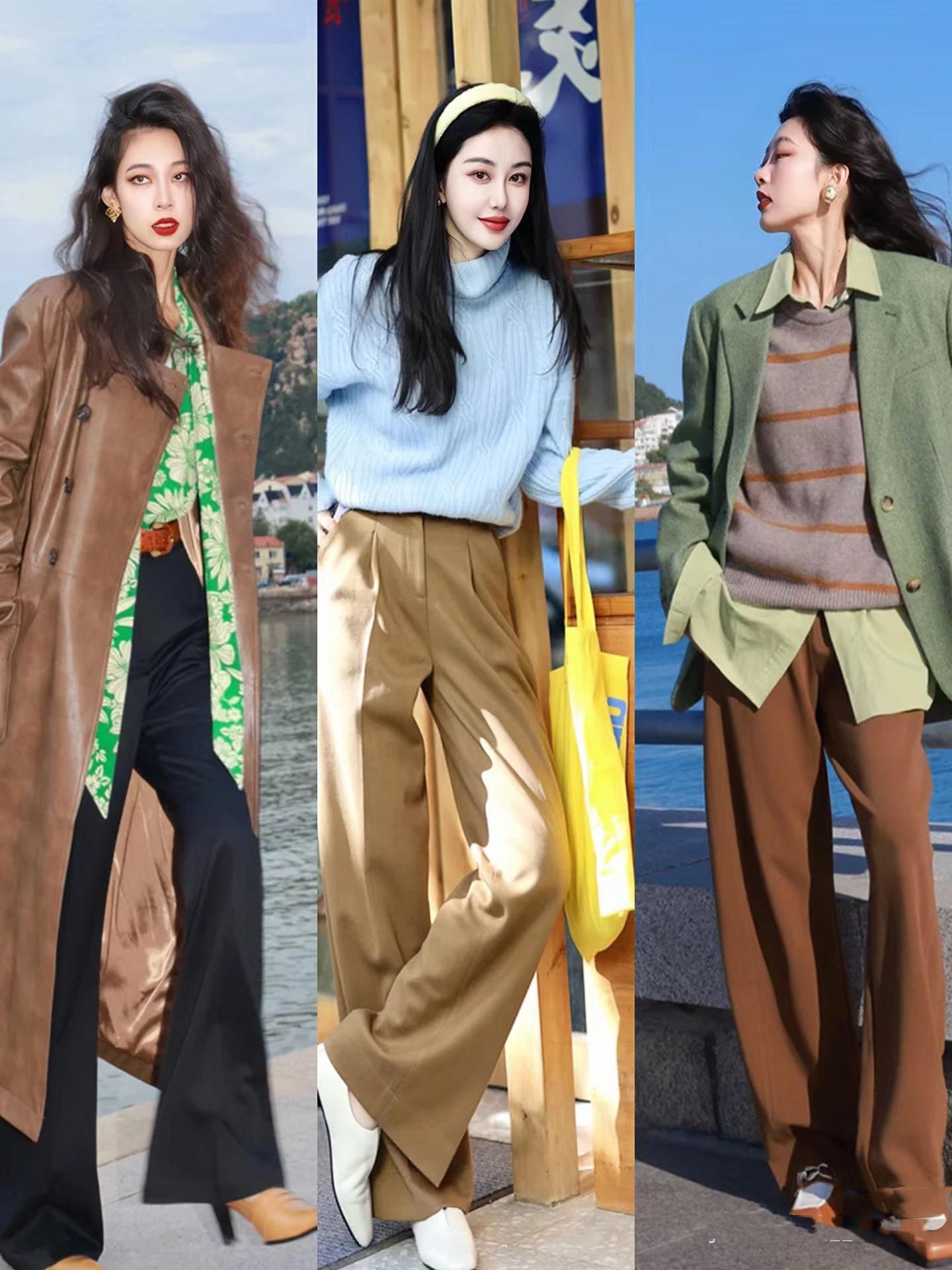 喜歡復古時髦風,也不要錯過美拉徳色系。秋天裏的美拉徳,真的是高級又醒目。棕色系的皮衣、闊腿褲、西裝褲,都給我們的穿搭增彩。