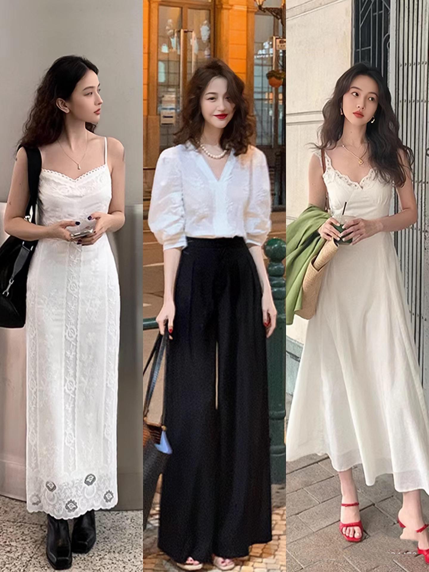 法式元素的融入,可以是一件小配飾,也可以是某一處的小細節。比如法式蕾絲裙、法式襯衫、或者大波浪的捲髮。