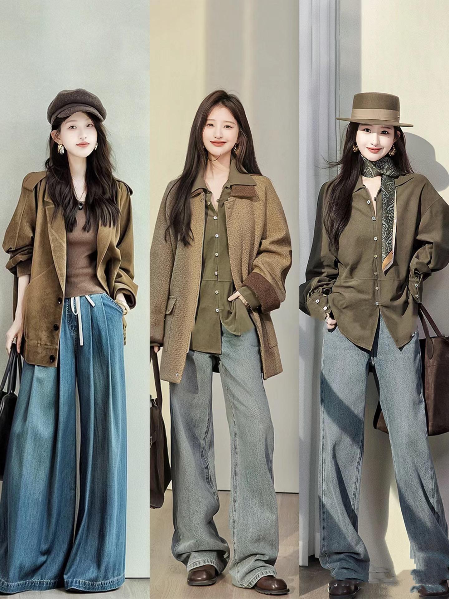 上身可以搭配修身的針織衫、寬鬆的襯衫,爲了營造氛圍感,還可以配絲巾、小禮帽,原來水洗牛仔褲的穿搭,也可以如此的時髦復古。水洗牛仔褲不羈又顯瘦,也不挑人。