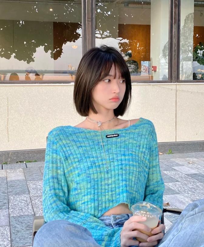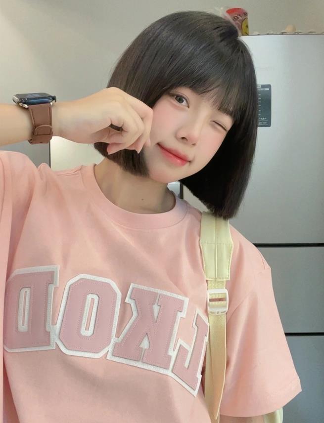 韓系甜妹範十足的一款短髮,方圓臉女生就很合適,一刀切+薄劉海,少女感滿滿,換上這樣一款短髮,就是很減齡呢,髮尾微微包裹住整張臉蛋,那可真的太瘦臉了,髮色可以染,也可以不染,不管怎樣都好看。