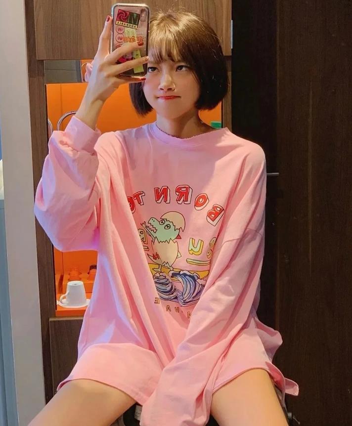 初戀頭短髮,看起來少女範十足,真的是誰剪誰好看呢,可酷可甜,超級瘦臉的一款減齡短髮,頭髮的長度到肩膀位置,這個長度對於小個子女生來說,是非常友好的,一點都不挑臉型,不管是什麼臉型的姐妹都可以剪。