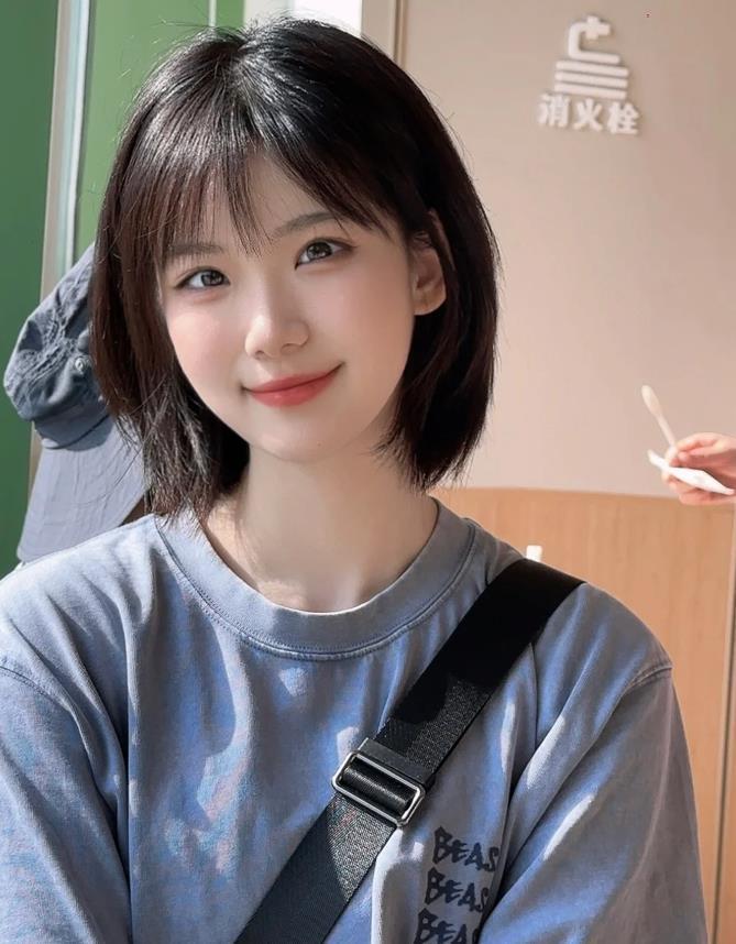 第一眼就很喜歡這種短髮了,少女感十足,關鍵是超減齡的,頭髮修剪到齊脖的長度,搭配上空氣薄劉海,那可真的太減齡了,也很修飾臉部輪廓。