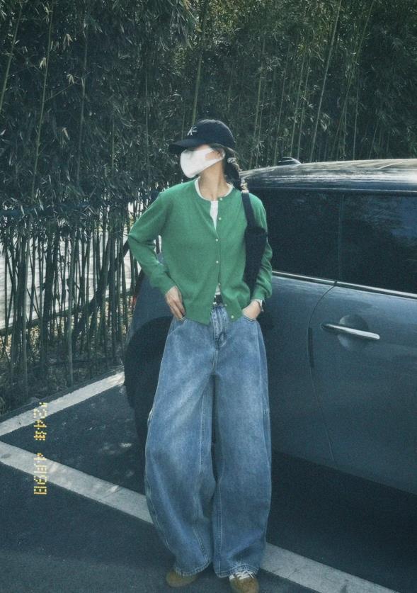 好喜歡這一套啊,非常休閒又舒適的穿搭,綠色針織開衫+白色t恤,疊穿真的太好看了,搭配起一條復古牛仔藍,清新又充滿活力,胯寬大腿粗的姐妹,就很適合這麼一條褲子,誰穿誰顯瘦。