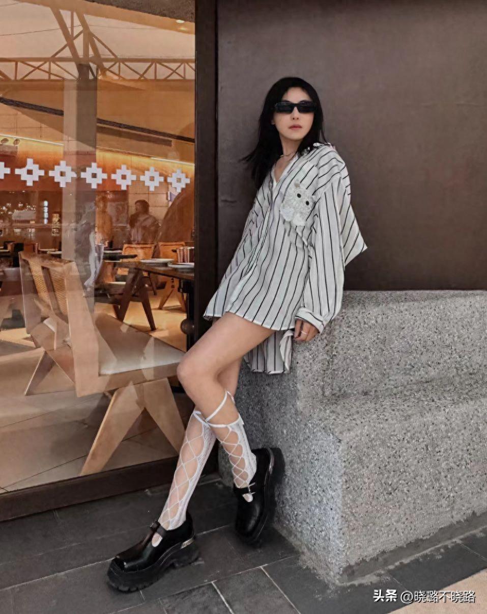厚底鞋子量感一般都比較大,所以需要跟短襪進行組合,形成一個過渡的功效,有了短襪的搭配之後,在視覺上還能拉長腿部比例,一鍵穿出大長腿!