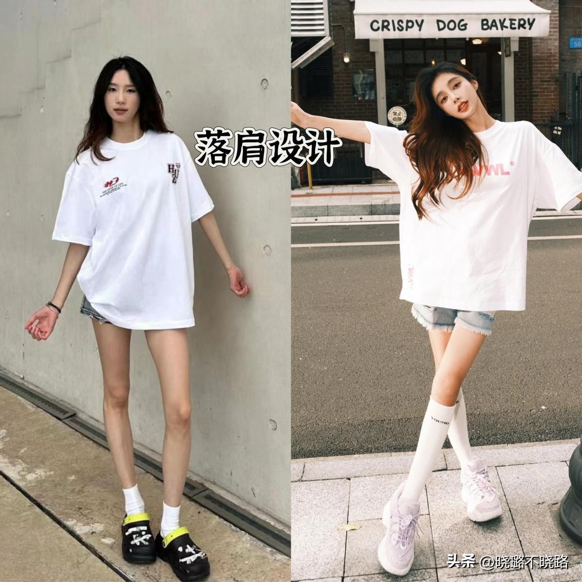 最不可缺少的下衣失蹤裝就是T恤,寬大版型的T恤,配合上落肩的設計,以及長度到手肘的袖口,就可以營造出一種很慵懶的氣息。