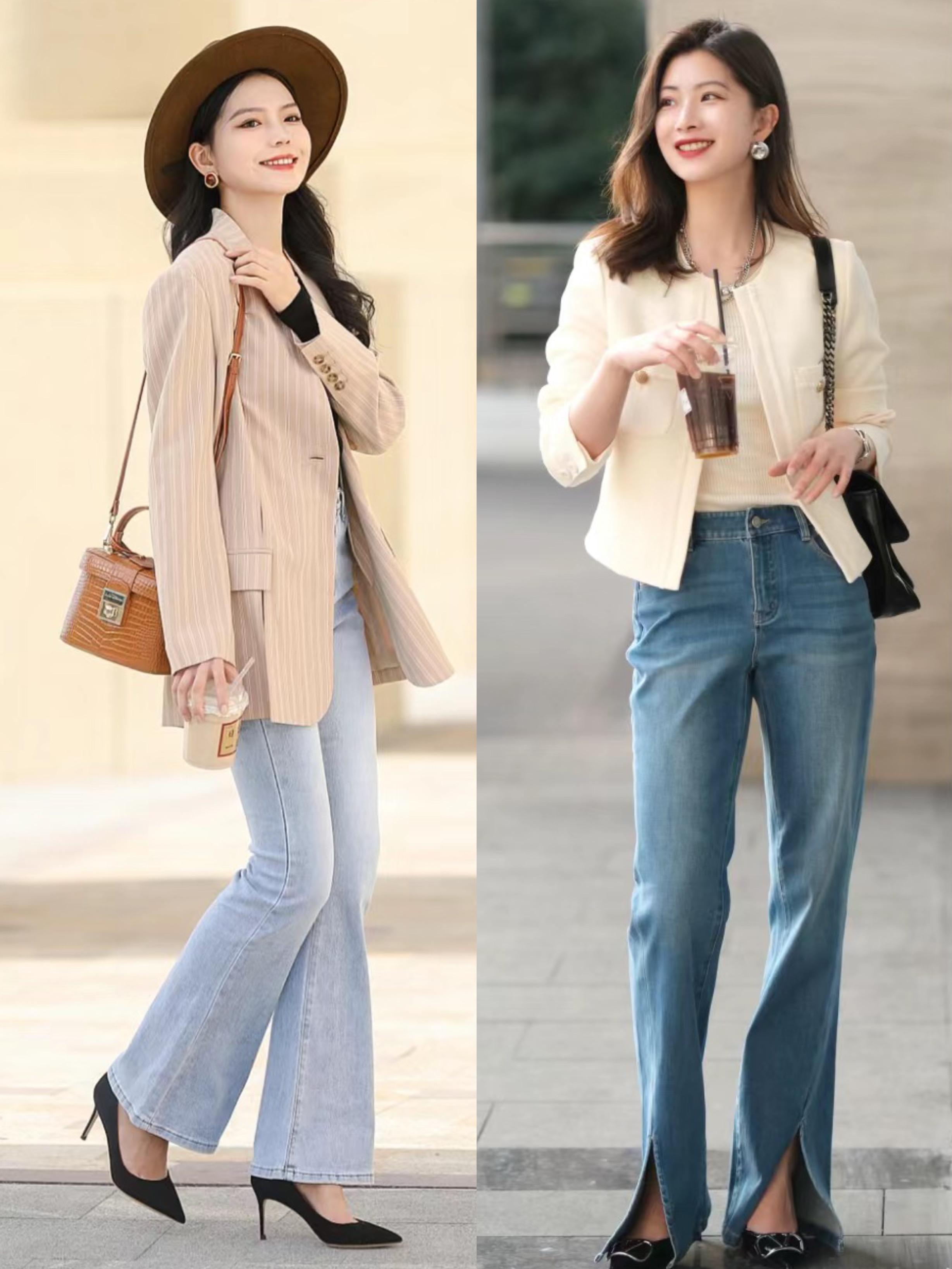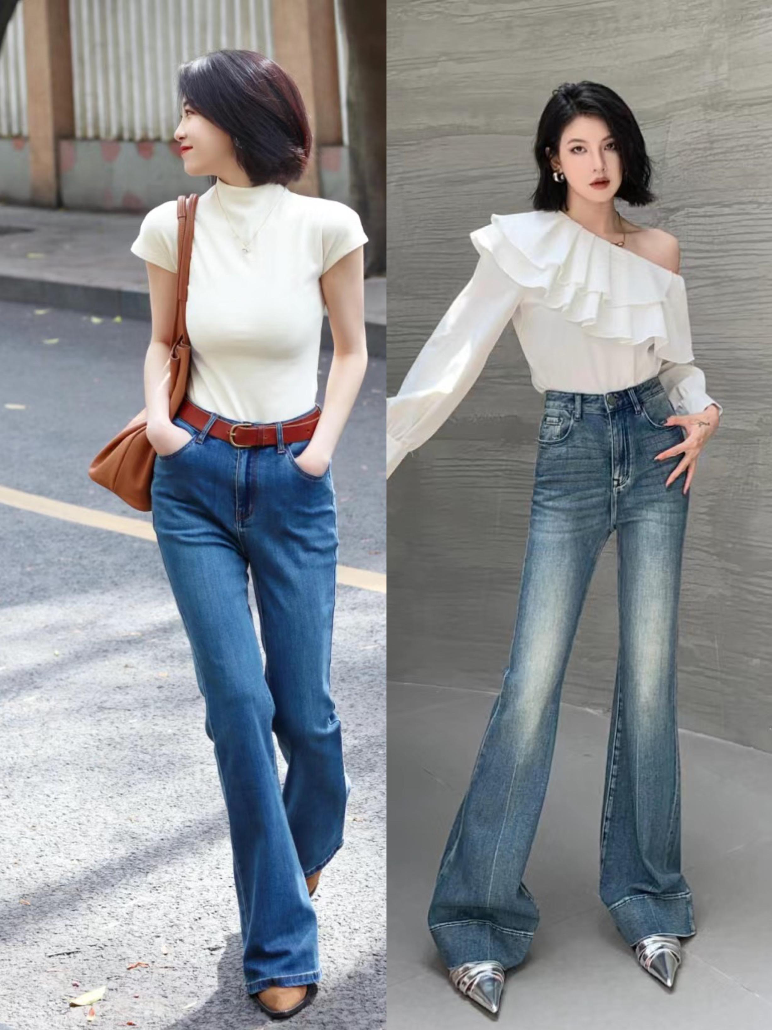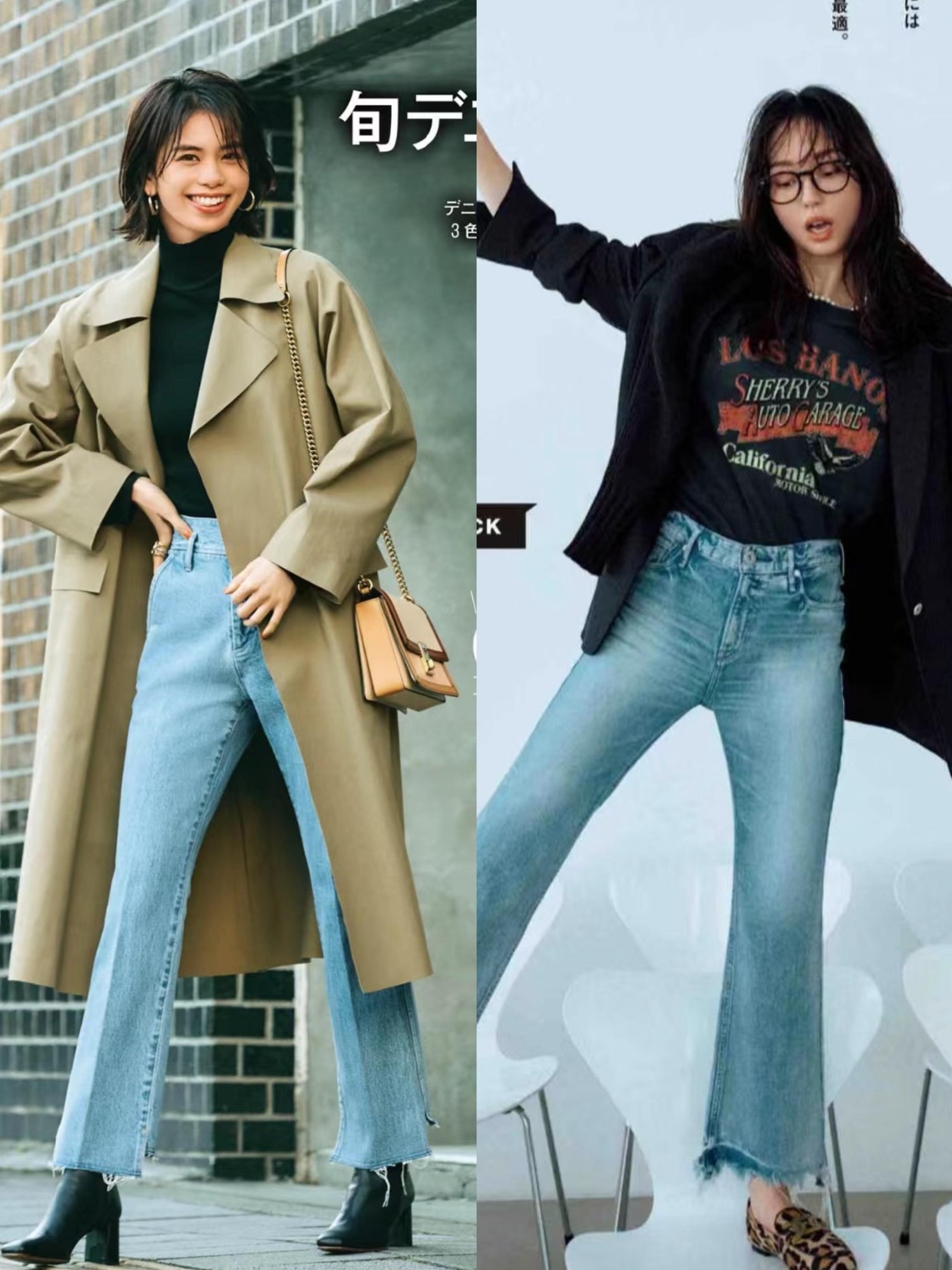 牛仔喇叭褲,修飾腿型、更顯腿長