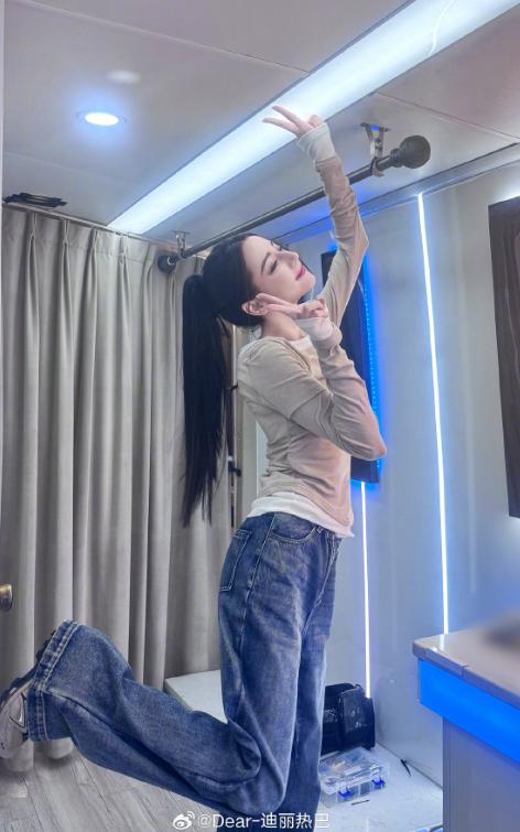 迪麗熱巴也穿上牛仔喇叭褲,演繹復古的少女風,看來牛仔喇叭褲,又要大火了。