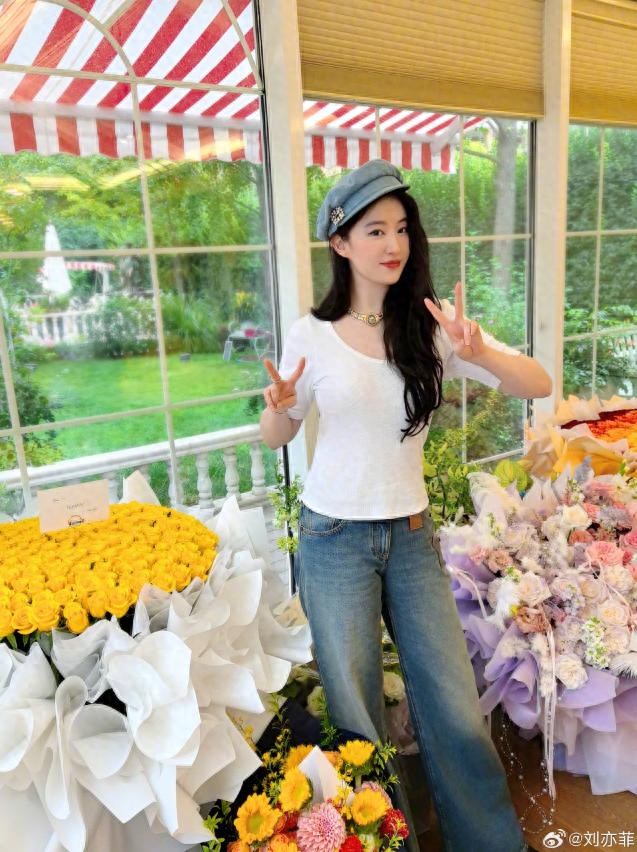 劉亦菲的生日會,就穿白T恤、牛仔喇叭褲,展示了復古風的潮流。