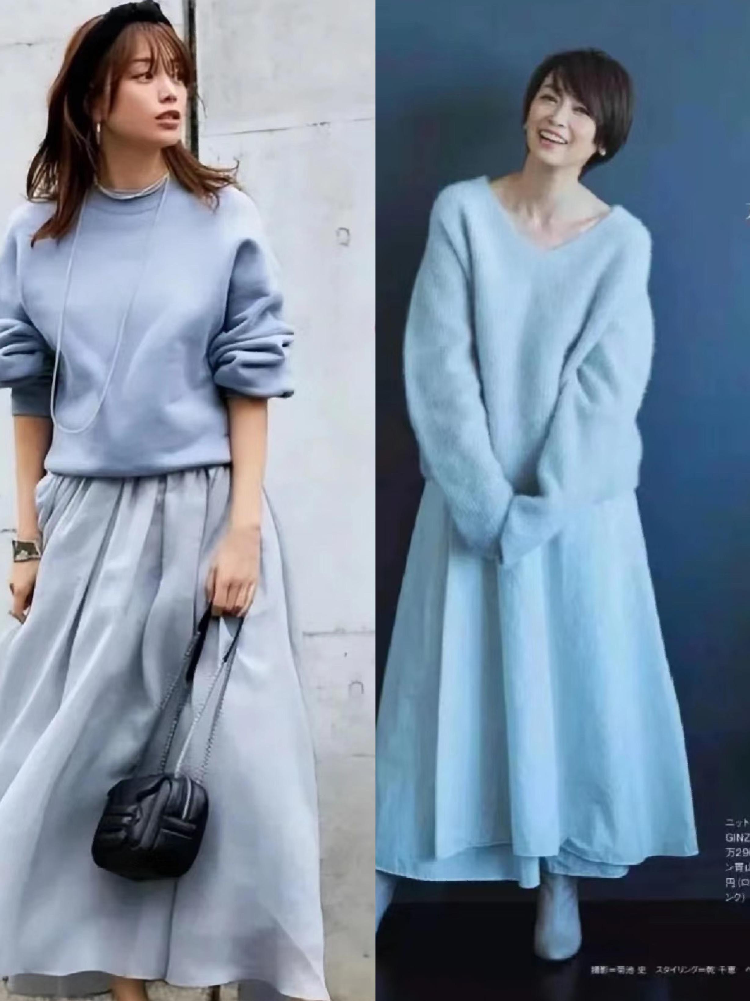 秋天裏的藍色系,像天空一樣的深邃悠遠。尤其是深藍色系,更高級顯白一些。飽和度和亮度都比較高,黃黑皮女生穿上好顯白。