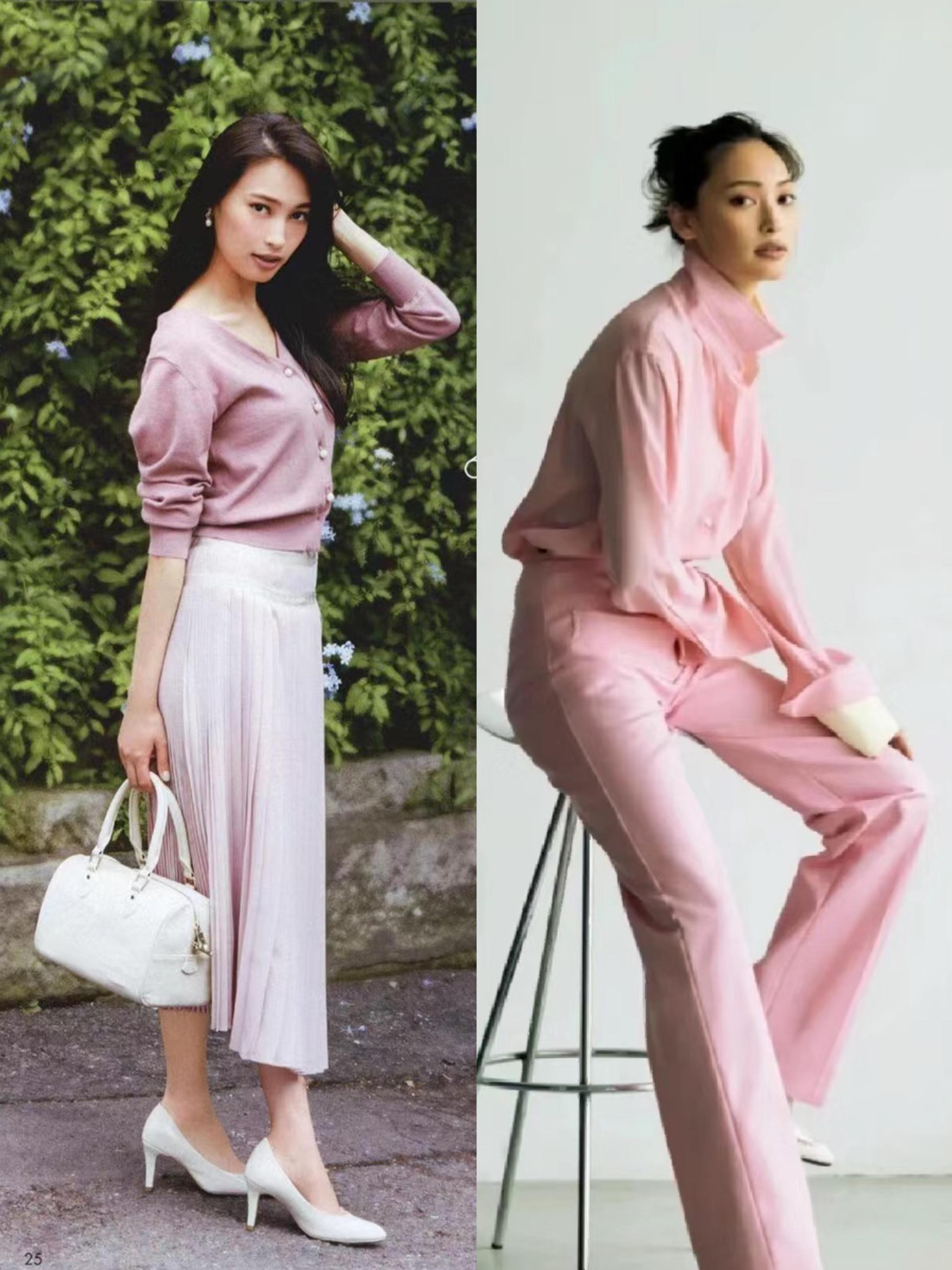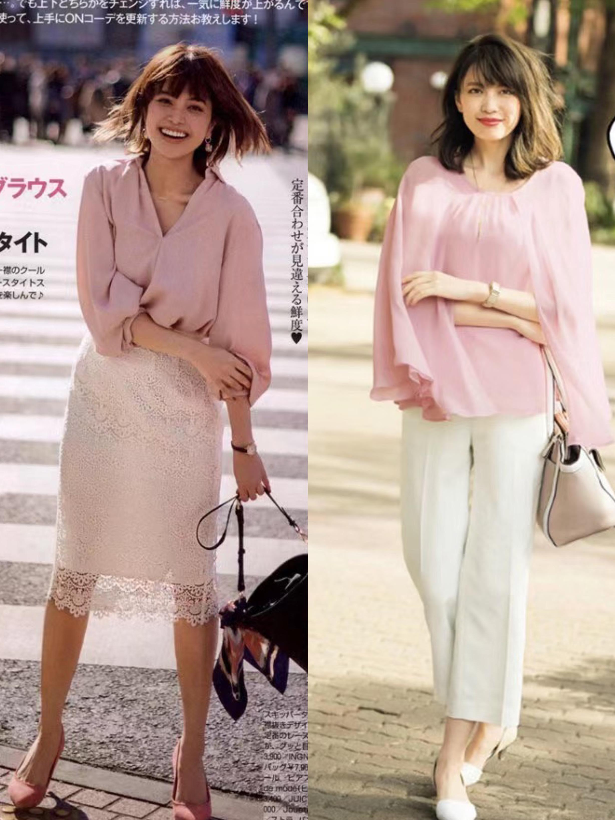 黃黑皮的女生,在選擇粉色系的時候,一定要注意避免亮度太高的粉色。我們可以嘗試更低調柔和的裸粉色,裸粉色的襯衫、穿在身上更溫柔甜美。