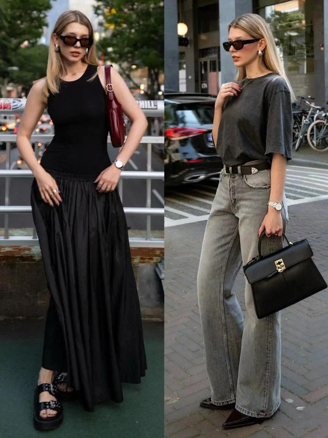在歐美風穿搭中,很少看到一些標新立異的元素。常見的小背心、T恤、或者半身裙、直筒褲、尖頭皮鞋,都是相對基礎日常的單品。