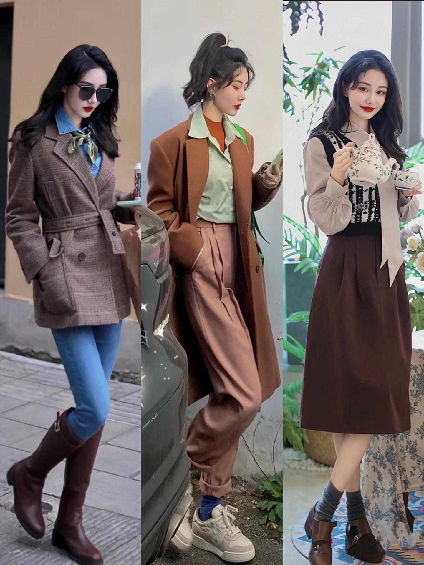 時髦又復古的穿搭,總是會讓人眼前一亮,棕色、咖色、焦糖色,在秋天裏都是自帶溫暖氛圍的顏色。