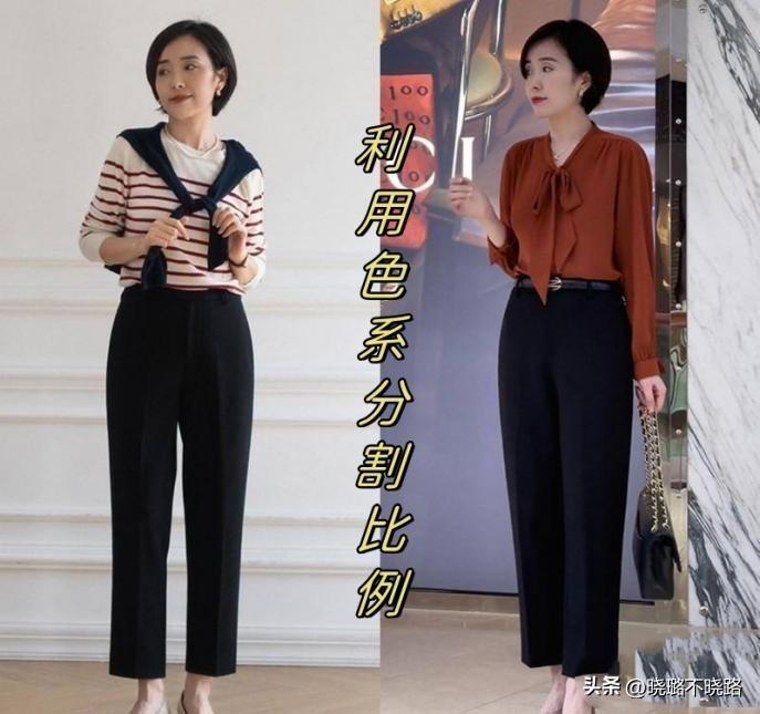 我們在選擇上下系列的單品的時候,可以利用色彩的對比去加強上下半身的區分感。這樣可以更明顯的分割比例,結合高腰設計的下裝,輕鬆拉伸了身形的長度,視覺上也會更顯個子高。