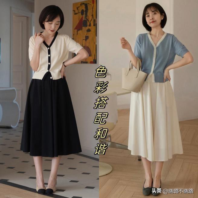 我們可以多多嘗試利用基礎色來進行搭配,特別是對於極簡主義的女性,黑白亮色的組合既能讓身形線條清晰十足,同時也能讓造型看上去更加得體大方。或者是加入莫蘭迪色系,讓造型更具有減齡感,同時也顯得溫暖而不失清爽。