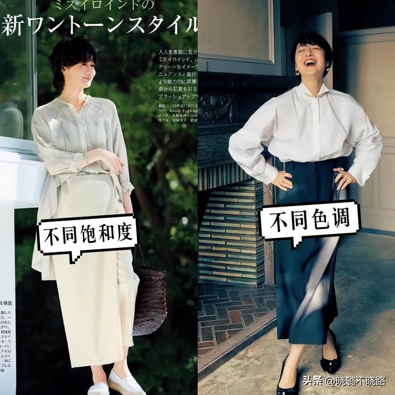 想要穿出減齡的效果,也需要顏色的配合。像富岡佳子的很多造型都是由三種顏色組合在一起的,利用不同的色調搭配突出層次感,顯得整個造型格外的吸睛洋氣。如果你的身高比較矮的話,更加建議你將淺一些的顏色放在上衣的挑選上,比如白色、綠色等等,可以更好的展現豐富的層次感。但是記得不要超過三種顏色,否則會給人一種眼花繚亂的感覺。