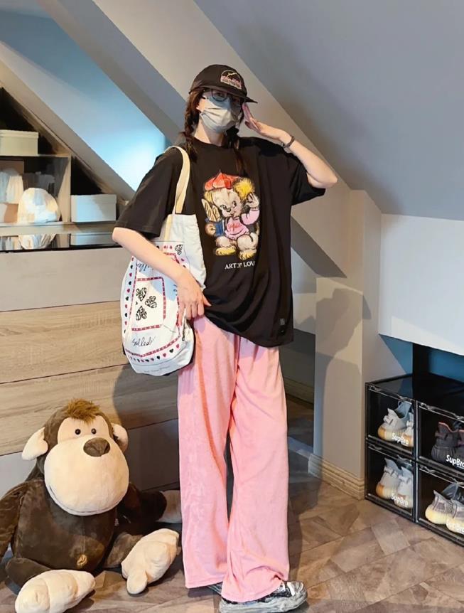 韓系風滿滿的一套,喜歡的姐妹們可以參考起來,黑粉的配色組合,又嫩又好看,上下版型都是寬鬆的,打造出今年很流行的鬆弛感,搭配起一雙厚底休閒鞋,可休閒舒適了,佩戴起一頂棒球帽,青春又減齡。