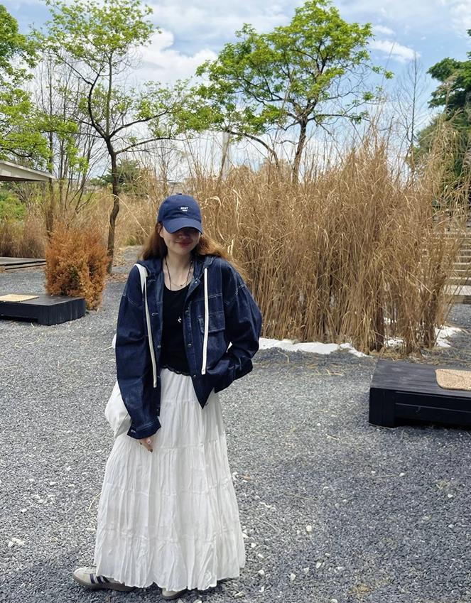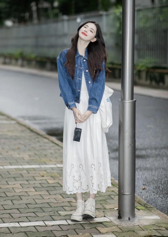 很適合早秋的一套穿搭,喜歡的姐妹們就安排起來吧,牛仔外套+白色半身長裙,藍白的搭配,真的是超級好看的,簡簡單單就很好看。上短下長的組合,能輕鬆優化整個身材比例,小個子女生果斷學習起來。
