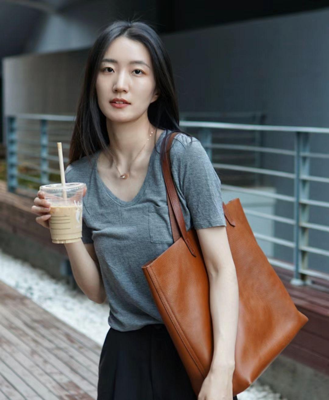 因爲托特包不光采用富有質感、看起來上檔次的面料製作而成,色彩還以黑色、白色、卡其色這些高級色爲主,再加上款式主打簡約,沒有繁瑣複雜的設計,因此,可以說是提升穿着者氣質形象的“好幫手”。