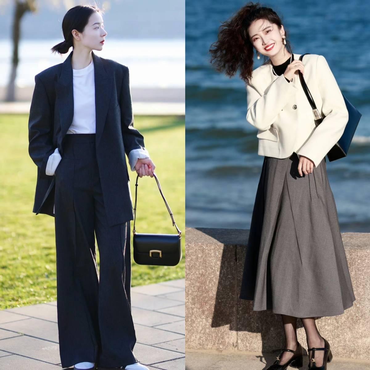 就拿黑色單肩包舉個例子。搭配西裝套裝,爲整體造型增添幾分日常休閒感;搭配裙裝,則多了幾分女性魅力。