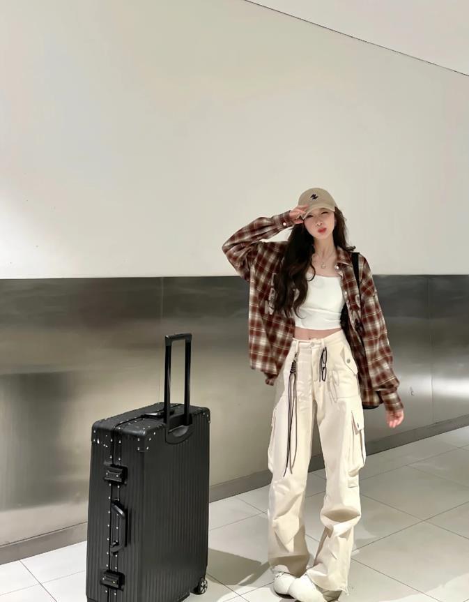 格子襯衫與工裝褲的搭配,實在是太愛了,喜歡復古風穿搭的姐妹們,這一套就可以借鑑起來,寬鬆的版型,那真的是太藏肉顯瘦了,內搭一件白色背心,就這麼敞開來穿,可太性感了,也很清爽涼快。