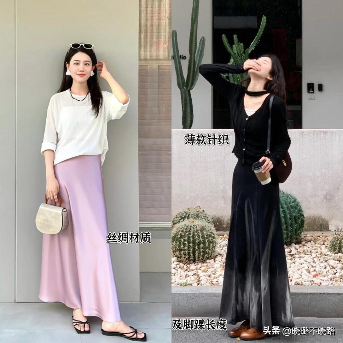 小骨架女生的特點就是窄肩窄胯,可一旦肚子上有肉的話,就應當放棄露臍裝,換成微寬鬆版型的針織衫,不管是套衫還是開衫,都很適合搭配絲綢材質的及踝長裙。