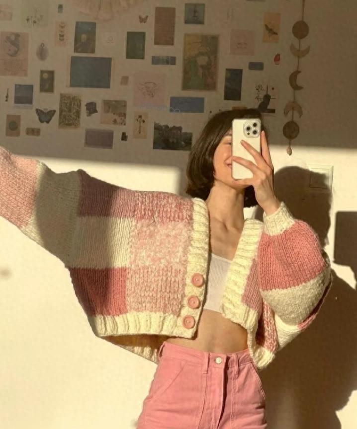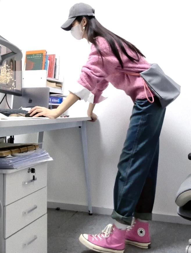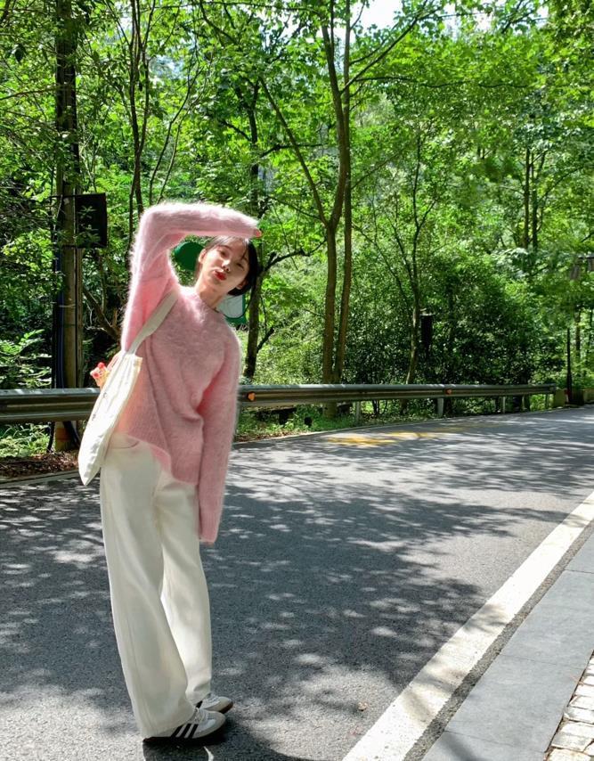 這一件粉色的毛衣,穿起來感覺整個人都變得很嫩了,毛衣的材質軟軟的,寬鬆的版型可太藏肉顯瘦了,隨便搭配一件白色牛仔褲,整個配色看起來清爽又舒服。記得選擇一雙運動鞋來配,這樣就更好看了。