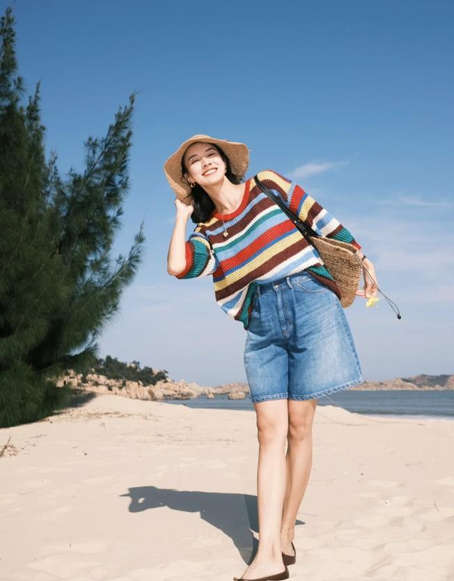 入秋,就是要選擇一些亮色系的單品來穿,撞色毛衣+牛仔短褲,整個着裝的風格看起來是很隨性自在的,上下版型都是比較寬鬆的,無論你是有什麼小肚腩,還是大腿粗的姐妹都可以穿起來。