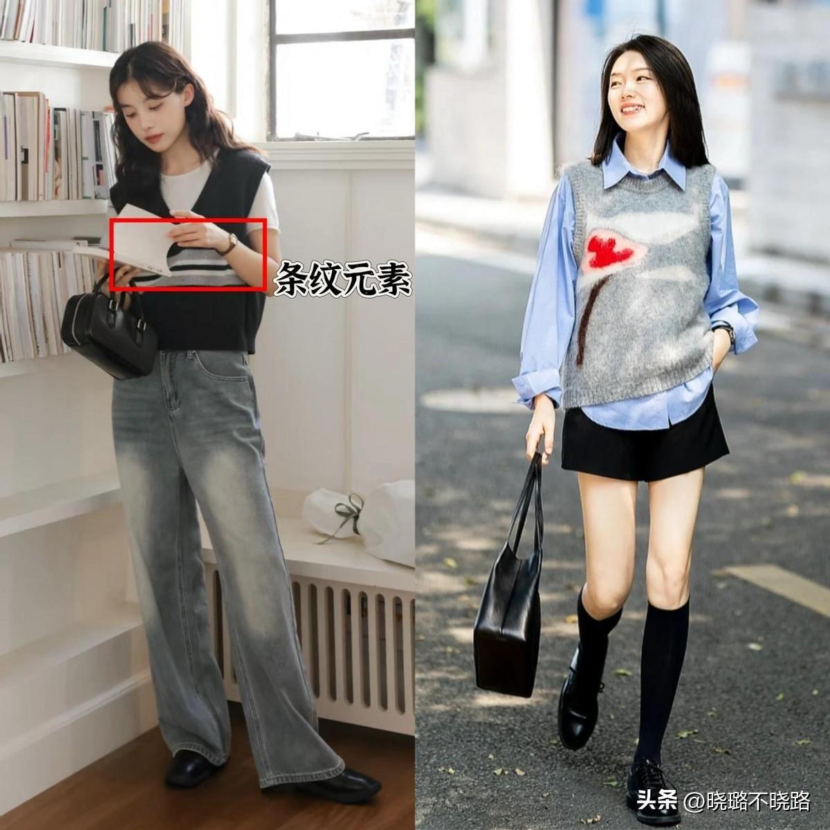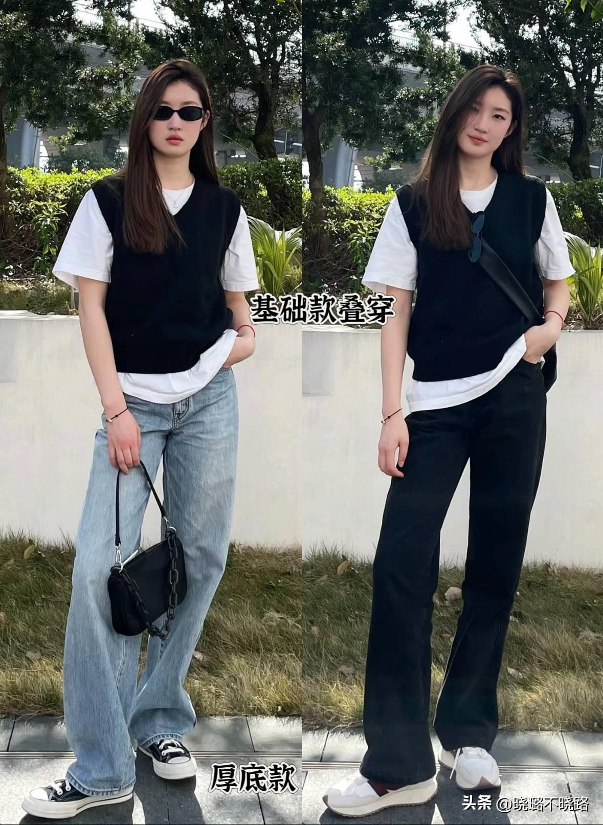 比如加入了時髦元素的針織馬甲,可以疊穿基礎款T恤或者襯衫,內搭的尺寸不能大於馬甲,纔可以成功的避開臃腫感。