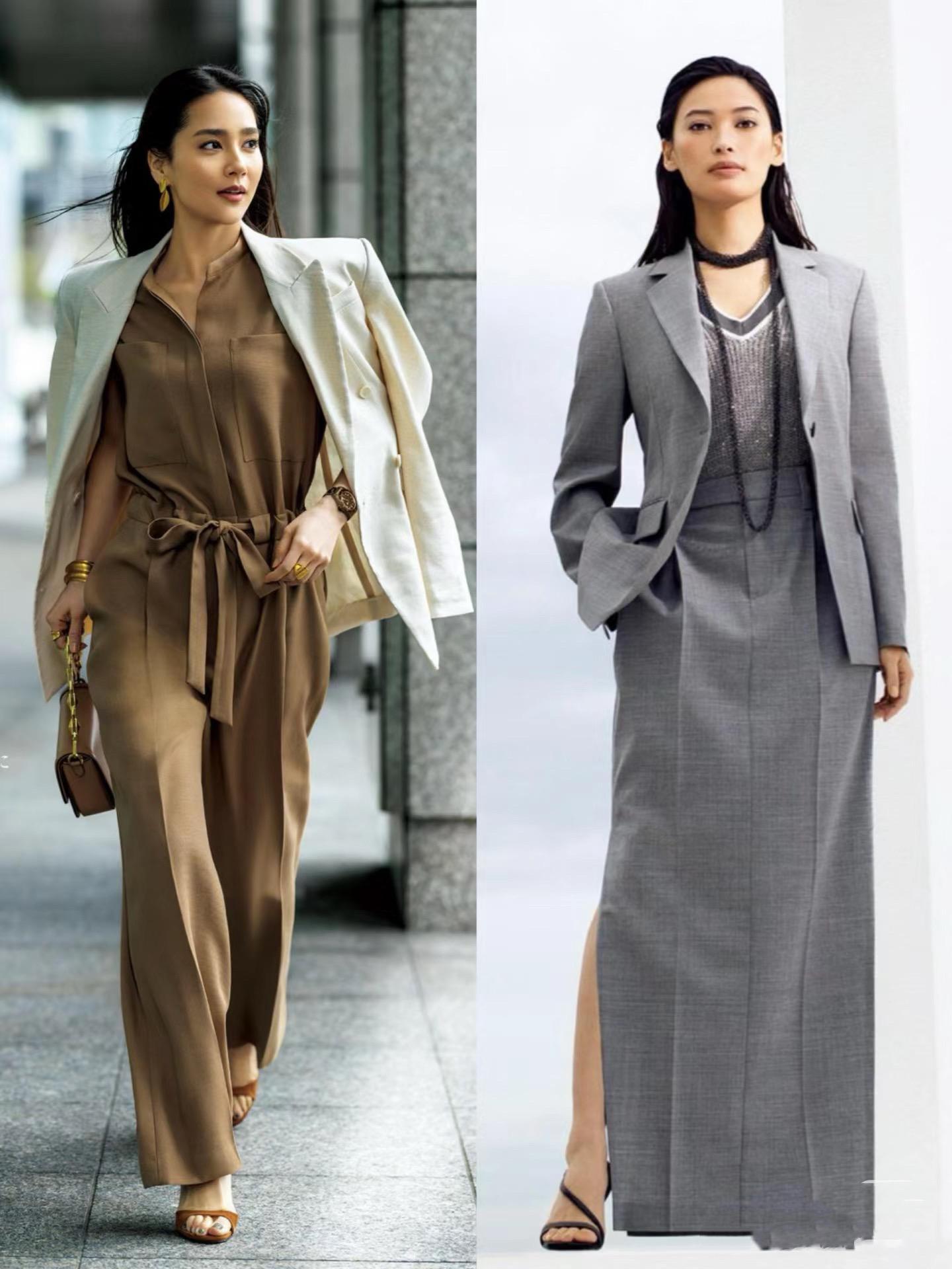 西服外套以基礎常規的版型、考究耐看的色系,爲成熟女性穿搭奠定了基礎。可以是上班族的優雅、也可以是寶媽的隨意、還可以是時髦精的摩登。