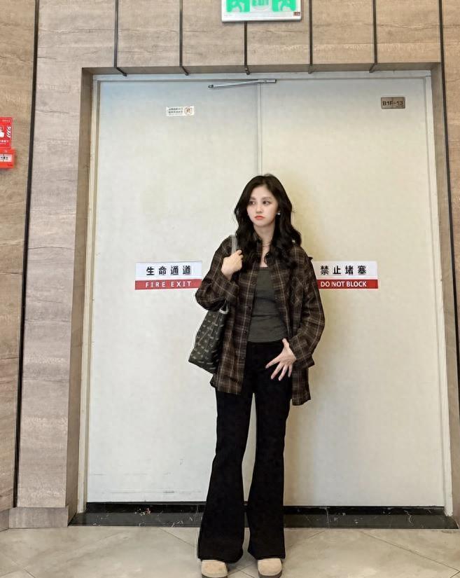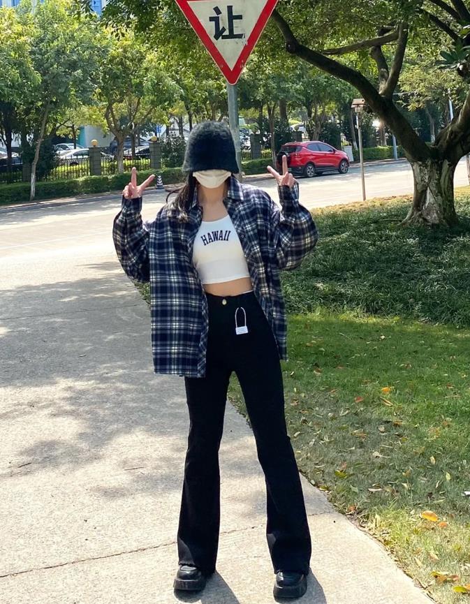 真的太喜歡這種穿搭了,格子襯衫+黑色微喇褲,上繁下簡的組合,能輕鬆打造出層次感,襯衫可以單穿,也可以與各種小背心、t恤進行疊穿,垂墜感十足的黑色微喇褲,真的能讓你穿得很顯瘦顯腿長。