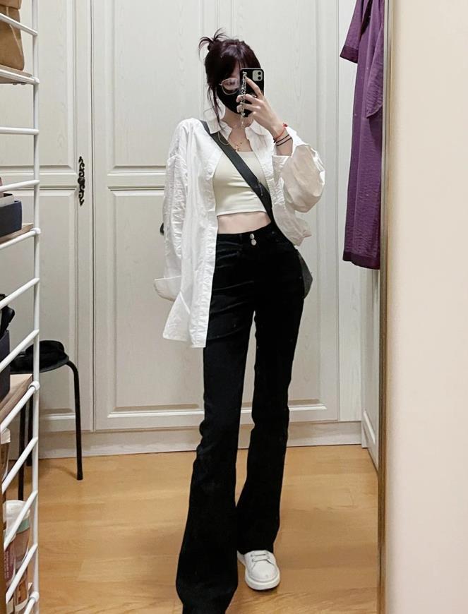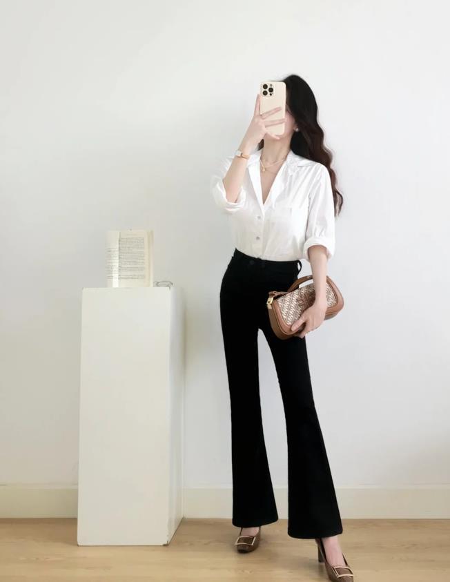 黑色微喇褲,配這幾件襯衫最好看!