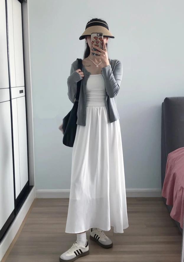 小個子女生,進入秋天該選擇什麼樣的鞋子呢?我覺得德訓鞋就很不錯,舒適不說,還很百搭,在很多場合都可以利用起來。白色吊帶+針織開衫,下身是一條白色半身長裙,小個子女生這麼穿,也很顯高挑。