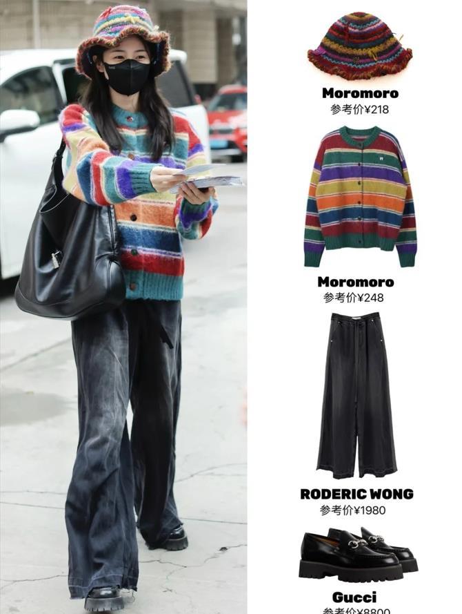 樂福鞋也是很適合小個子女生穿的,不過在選擇的時候,建議入手厚底的款更合適,像白鹿腳下穿的這雙黑色厚底樂福鞋,就是很顯高呢。撞色毛衣開衫+牛仔闊腿褲,這也太好看了吧。