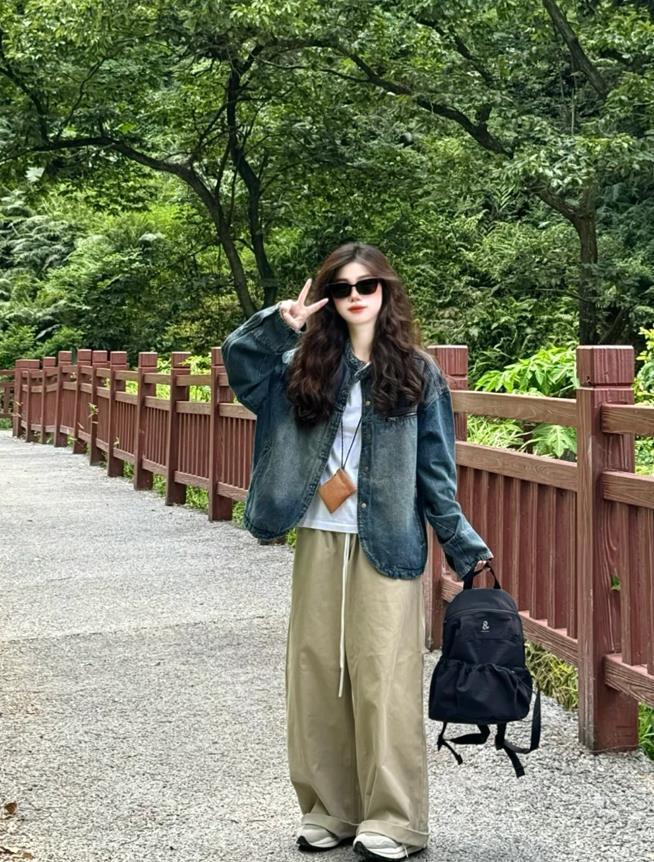 很適合個矮姐妹們的一套穿搭,墨染款式的牛仔襯衫+牛仔短褲,套裝穿起來很省心,也不用花費太多心思去搭配,只需選擇一雙合適的鞋子來配就行,加厚底設計的單鞋,真的把雙腿修飾得很細長。