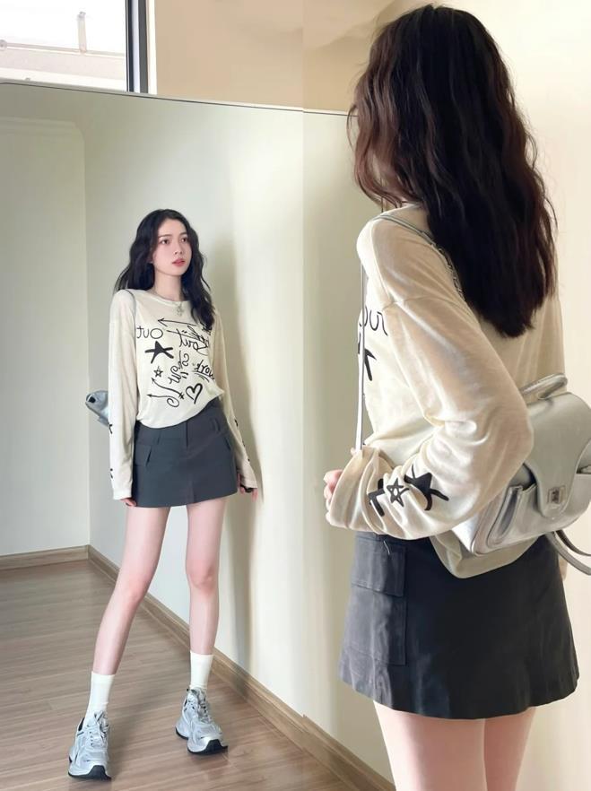不管在什麼時候,運動鞋都是不會出錯的鞋款,不管是高個子,還是小個子都是能穿的,厚底的老爹運動鞋,對於個矮的女生而言,穿起來不僅舒適,還很好打造出高挑感。搭配上,也能與各種衣服相配,長袖罩衫+工裝半身短裙,初秋季節這樣穿,簡單又清爽。