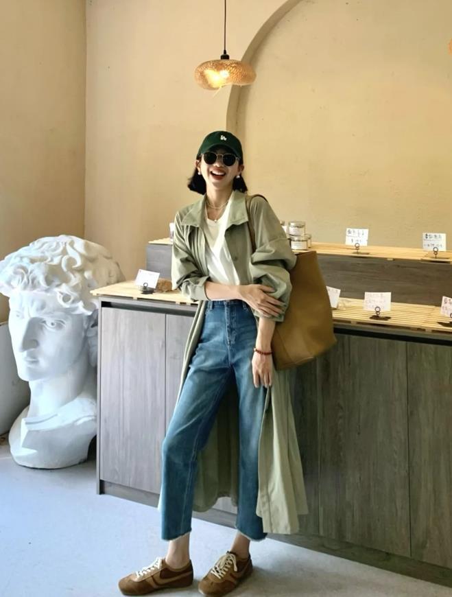 入秋後,風衣外套必然會成爲很多姐妹們衣櫥的首選了,卡其綠的風衣外套,不得不說這個色調還是蠻出色的,搭配白色t恤+牛仔褲,簡單的高級感,鞋子選了一雙德訓鞋,整個穿搭舒服又好看。