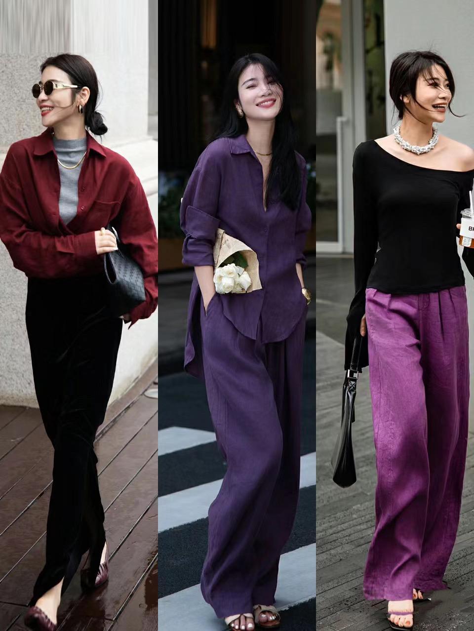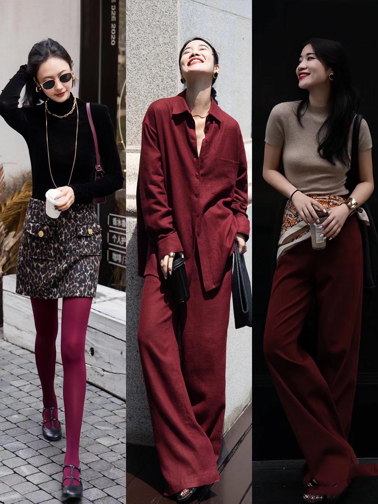 比如梅子紅的襯衫、闊腿褲、或者梅子紅的打底褲,在這個秋天都可以自信的安排起來,讓我們的穿搭變得時髦而多彩。