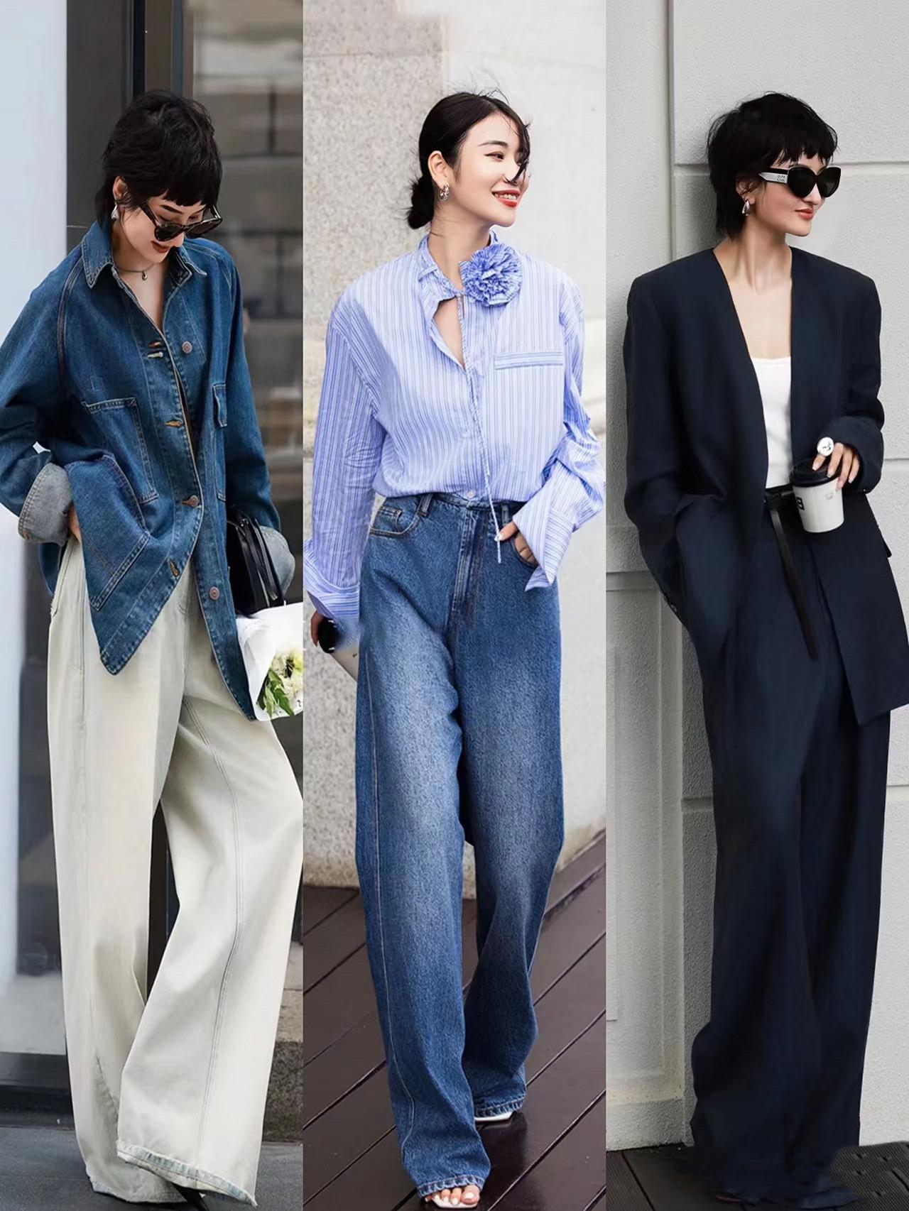 淺藍色的牛仔褲,或者深藍色的西服外套,以及牛仔藍色襯衫、闊腿褲,在秋天裏都可以派上用場,隨意一穿,不僅顯白還更洋氣,遠遠的就透着高級範。