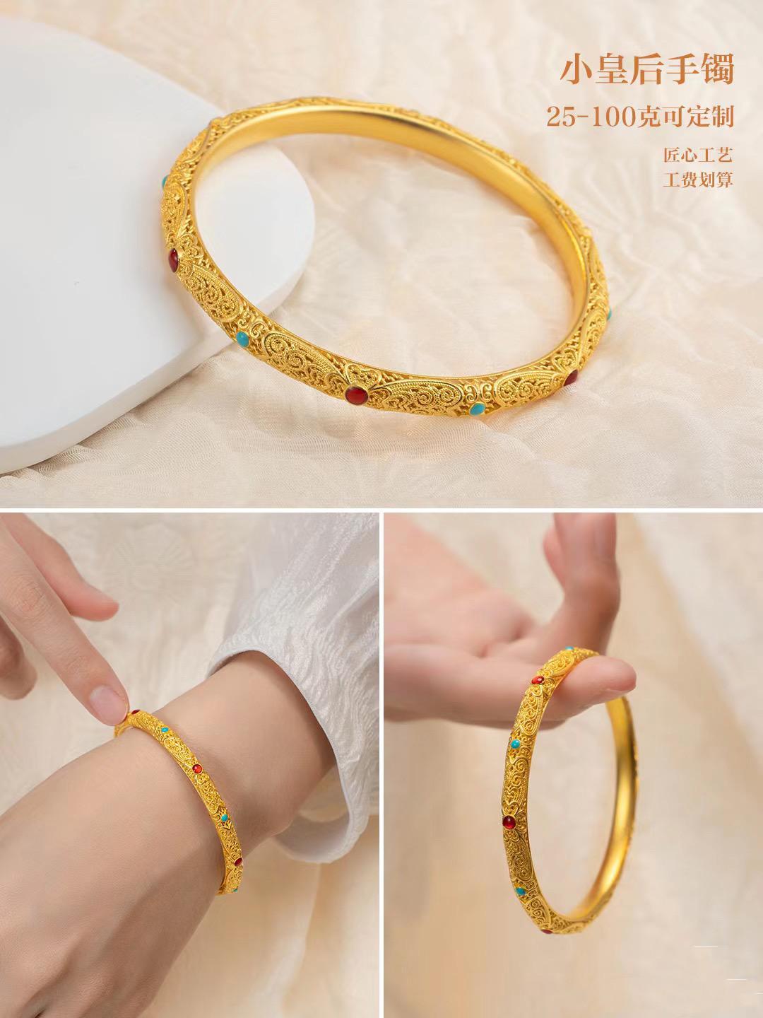 其實我們佩戴金手鐲的時候,手鐲的克重、厚薄,也儘量與我們的年紀匹配。太青澀的長相,也很難駕馭格外厚重貴氣的金手鐲。
