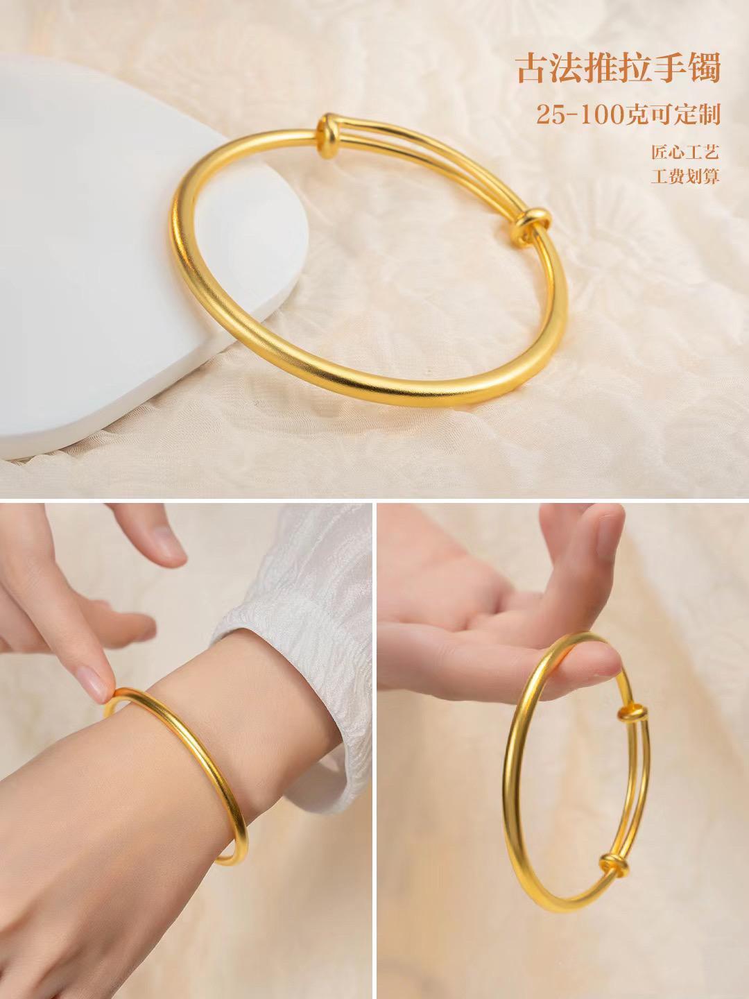 推拉手鐲有一個比較明顯的優勢,就是不挑手圍。不管多大的手圍,都可以選擇古法推拉手鐲,因爲手鐲的環圈可以更好的調整。
