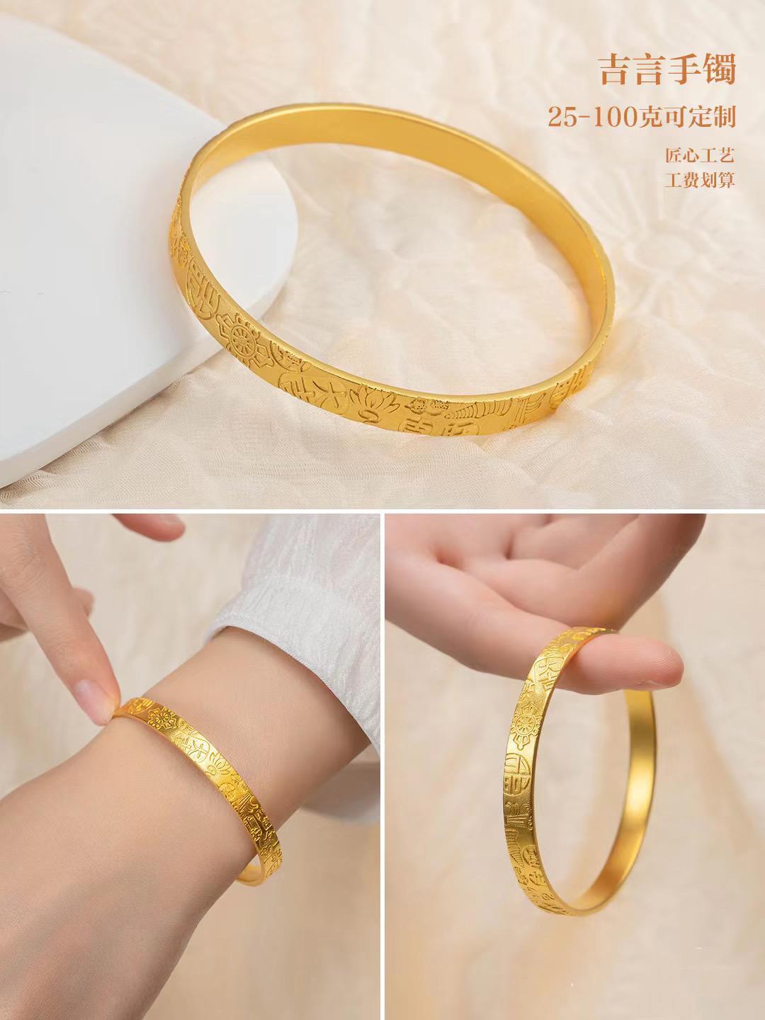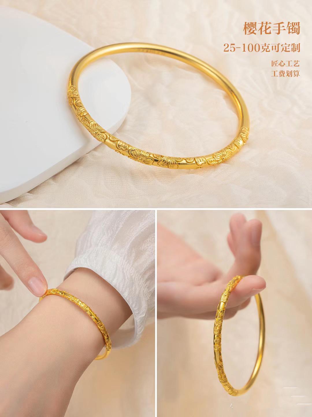 利用了精雕的雕刻工藝,在金手鐲的外壁上雕刻櫻花圖案。有了栩栩如生的圖案裝飾,櫻花手鐲也變得唯美靈動起來。
