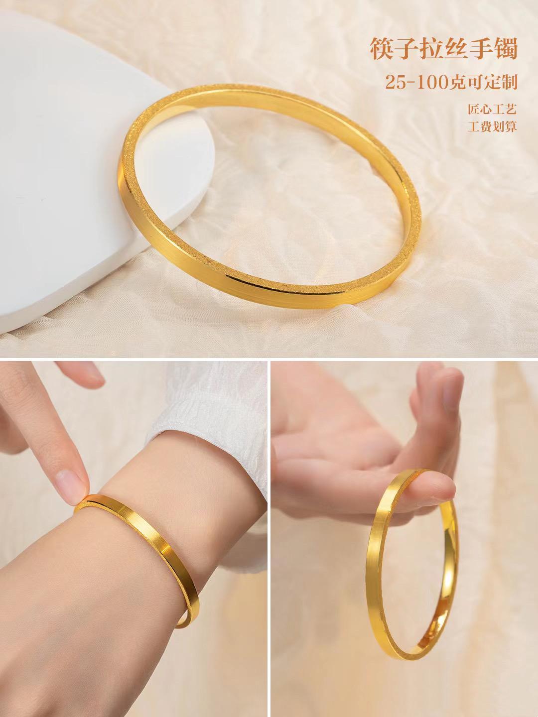 與小方鐲比較相似,只是融入了拉絲工藝,讓手鐲的質感更加古樸。