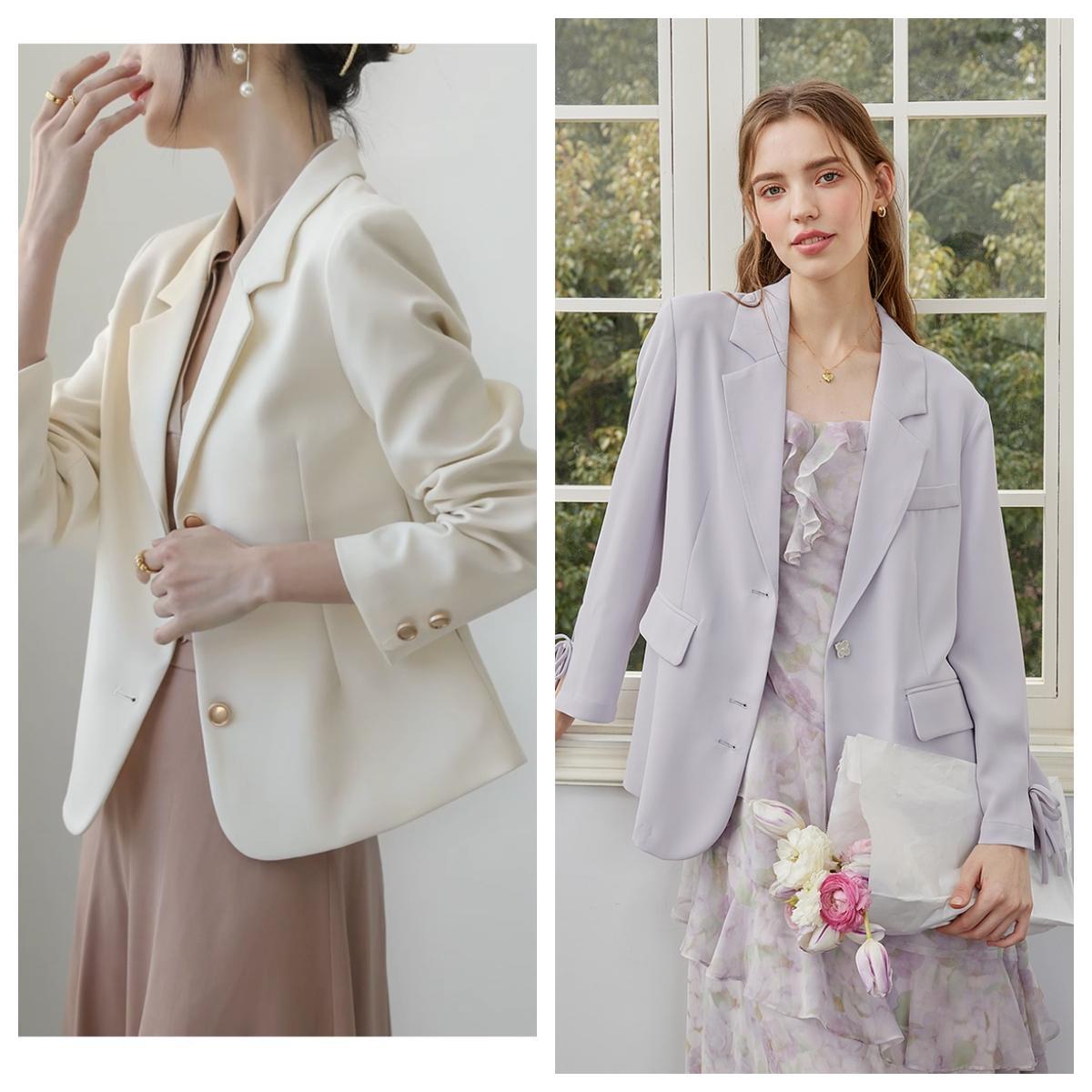 小西裝外套真的建議一定要來一件,真的可以搭配很多衣服,春秋穿完全沒問題,不管是日常休閒還是通勤上班,搭配吊帶上衣、連衣裙、襯衫、純白T恤,完全不在話下。穿脫方便,可塑性強。