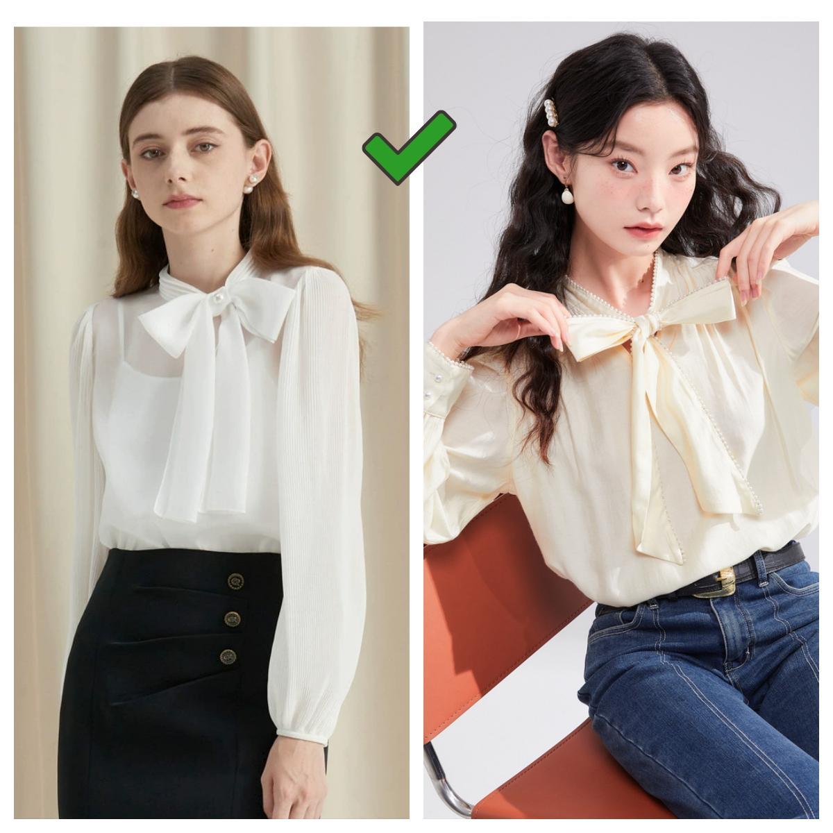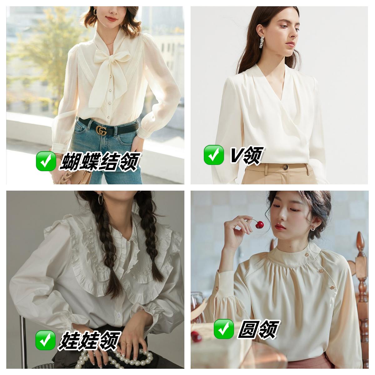 從款式來看,領子的實用百搭程度,蝴蝶結襯衫>V領襯衫>方領襯衫>娃娃領襯衫>圓領襯衫。