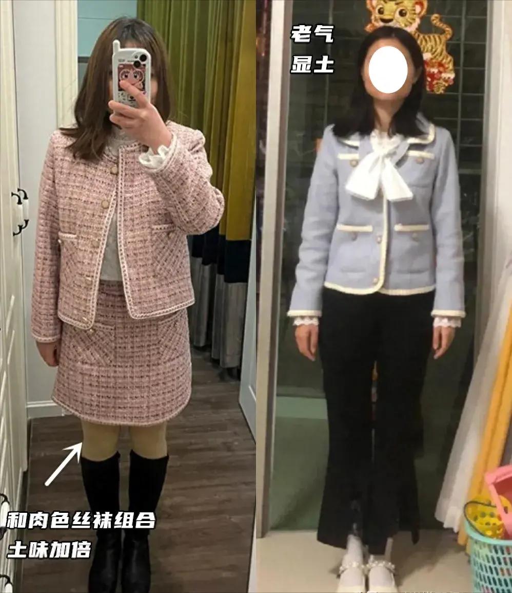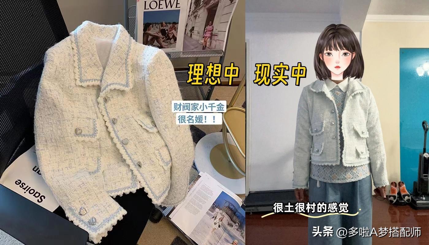小香風套裝是一個極其考驗身材和顏值的單品,本是想打造精緻名媛風,結果買回來一看買家秀,濃濃的鄉土氣息,單穿外套不好搭配,成套穿又非常顯土,實用性不強,太雞肋了,有些材質不好的粗呢花,顯老氣。