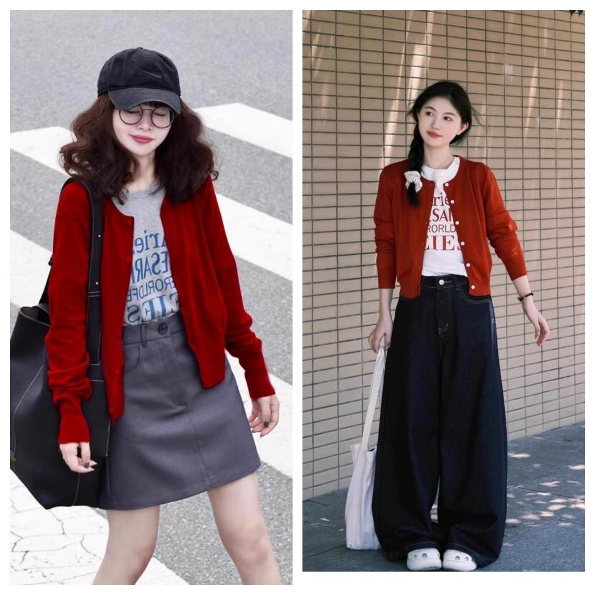 針織衫或者毛衣外套,一定要選開衫款,可穿可脫,內搭簡約的T恤、襯衫或高領打底衫,還可以疊穿,增加層次感。