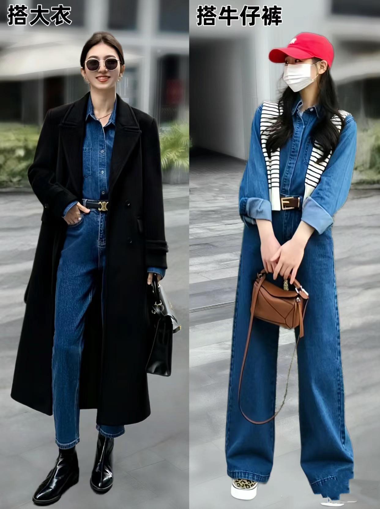 一身藍色系的牛仔穿搭,配上腰帶的修飾,瞬間變得洋氣起來。天氣轉涼的時候,我們可以用藍色牛仔襯衫配黑色大衣,高級冷豔的氣場,觸手可得。