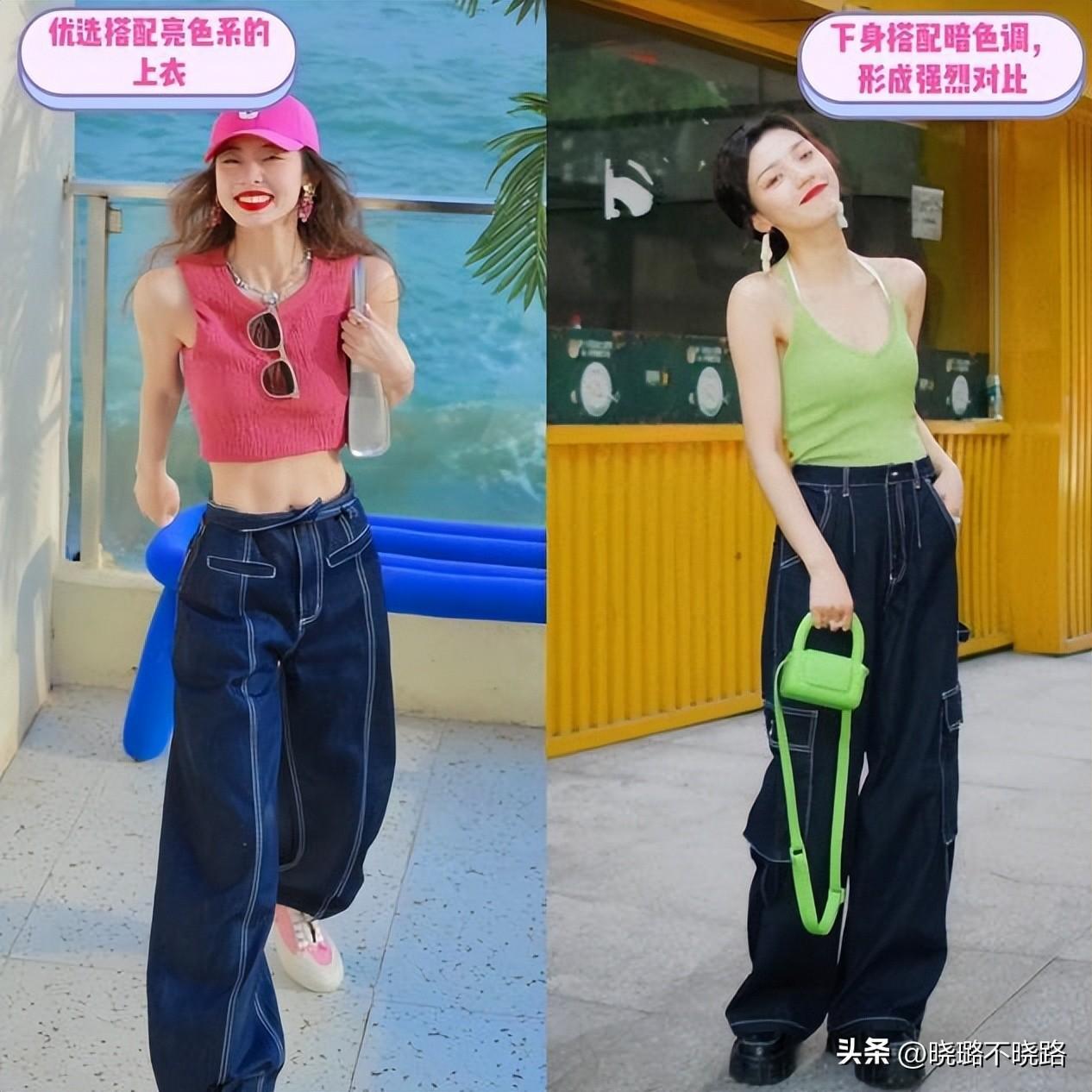 比較減齡一點的穿搭風格其實就推薦可以將吊帶或者是彩色調的露臍裝搭起來啦,最好可以優選搭配一些帶有可愛元素的類型哦,下身當然是要將暗色系與其結合形成一個強烈的視覺對比,上彩下暗的搭配那可真的是很甜酷的風格趨向了。