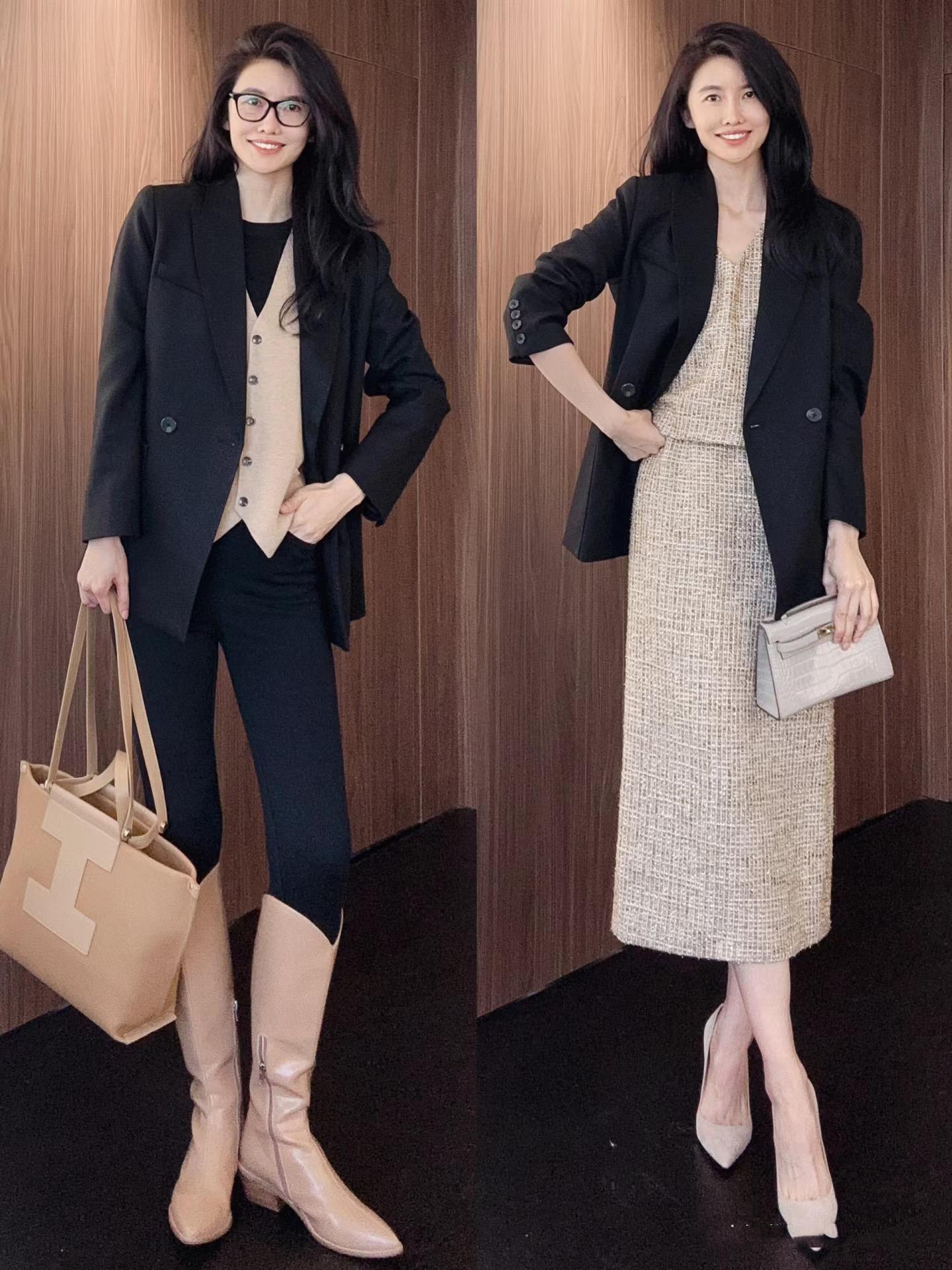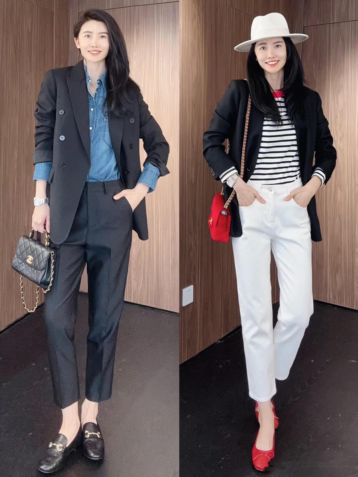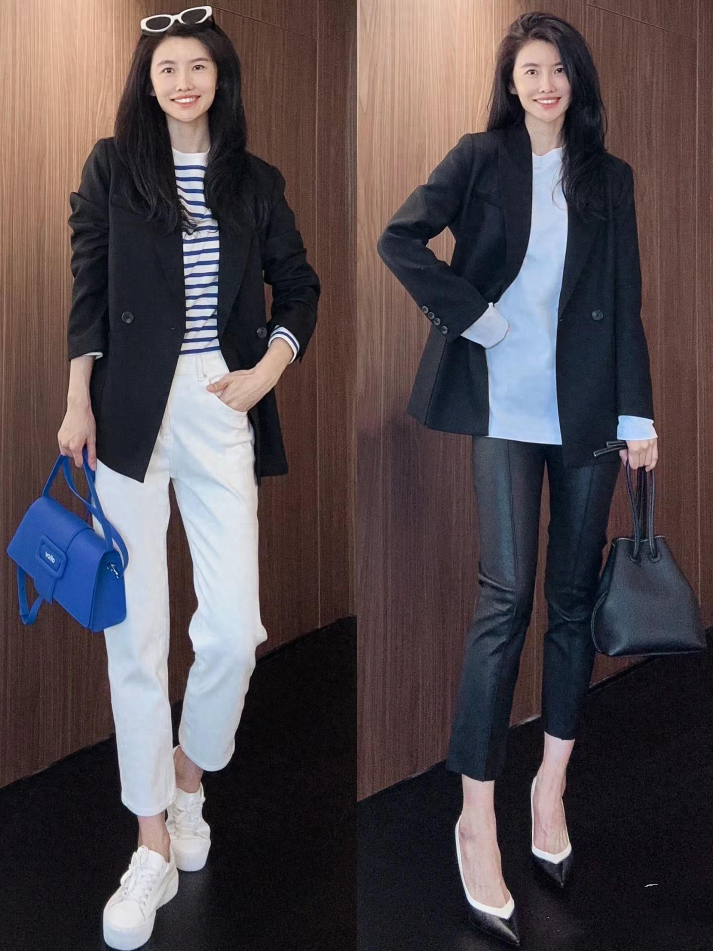黑色西服怎麼穿不土氣?選擇內搭很關鍵,學博主這樣穿時髦減齡